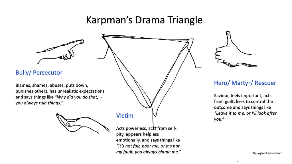 Steven Karpman, the creator of the Drama Triangle model, see below, outlined how the hero, along with the victim and persecutor, contributes to the cycle of interpersonal conflict and dysfunction.